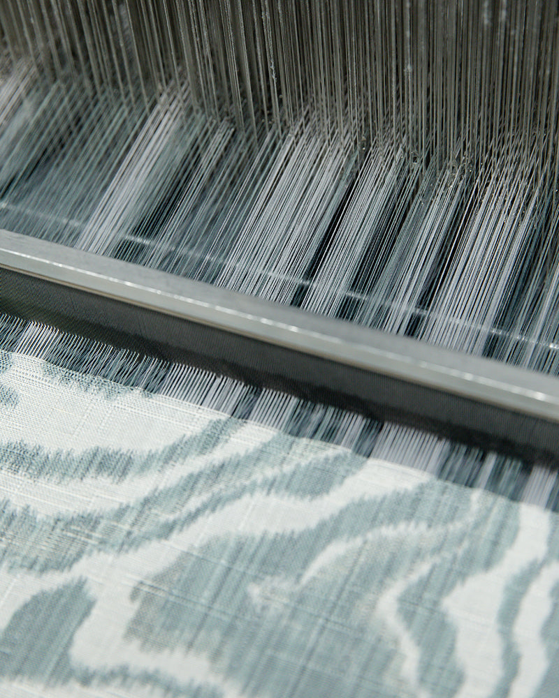 Our woven fabrics are specially designed to feature rich, naturalistic colors and textures. Rebecca creates each pattern with the weaving process in mind, picturing how the loom will animate the lines and colors of her artwork and make it even more dynamic. Unlike with printed fabrics, where the pattern sits on top or sinks in, the pattern of a woven fabric is created one thread at a time by the warp (the foundational yarn that runs down the fabric) and weft (the yarn that moves from one side to the other). Even more so than with other textiles, the quality and color of the yarn chosen for woven fabrics matter enormously.