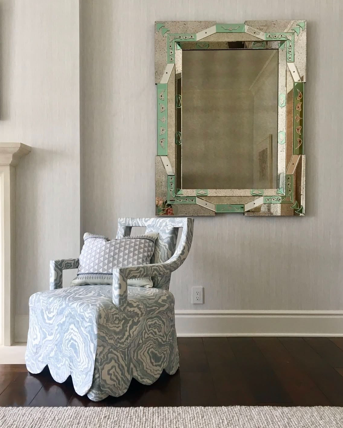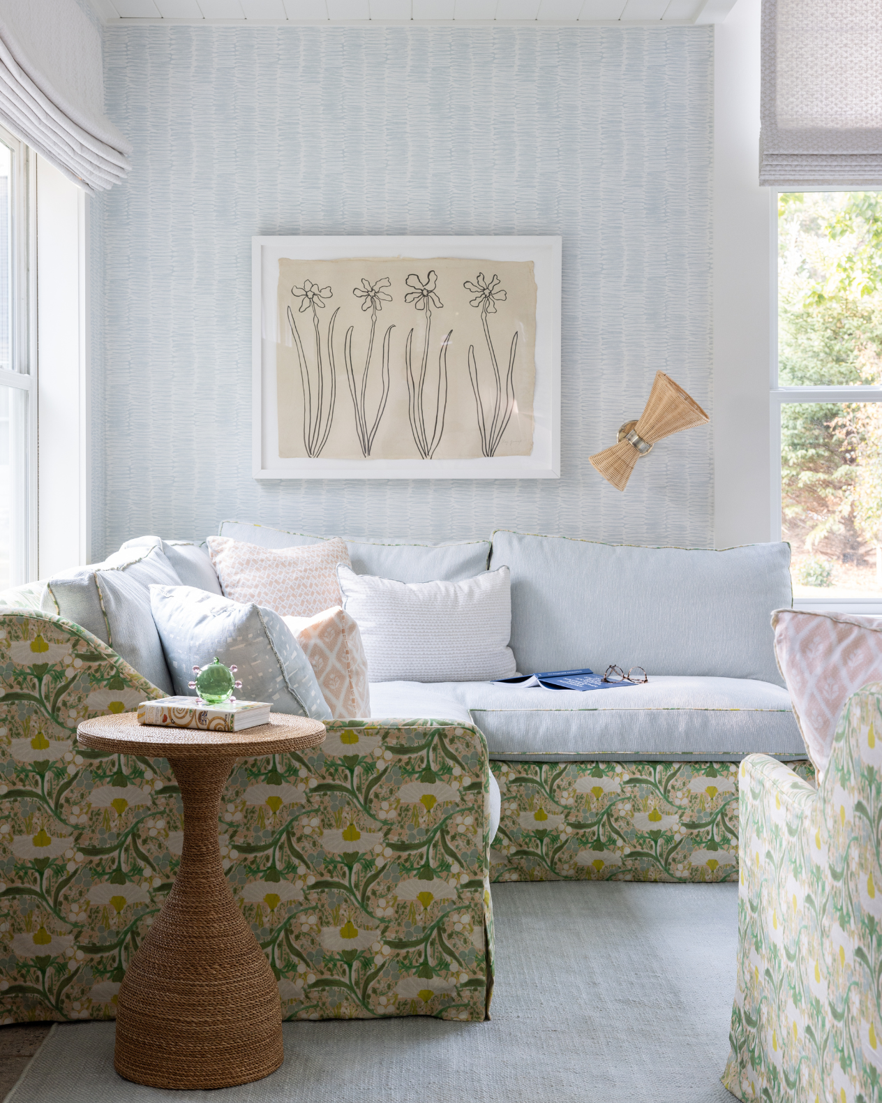 CM: We love the way the Scribble wallpaper works as a texture and a backdrop to bolder patterns in the space. Ultimately, we were creating a respite for our client, a space where she can relax with her family after a long day on the Lake.