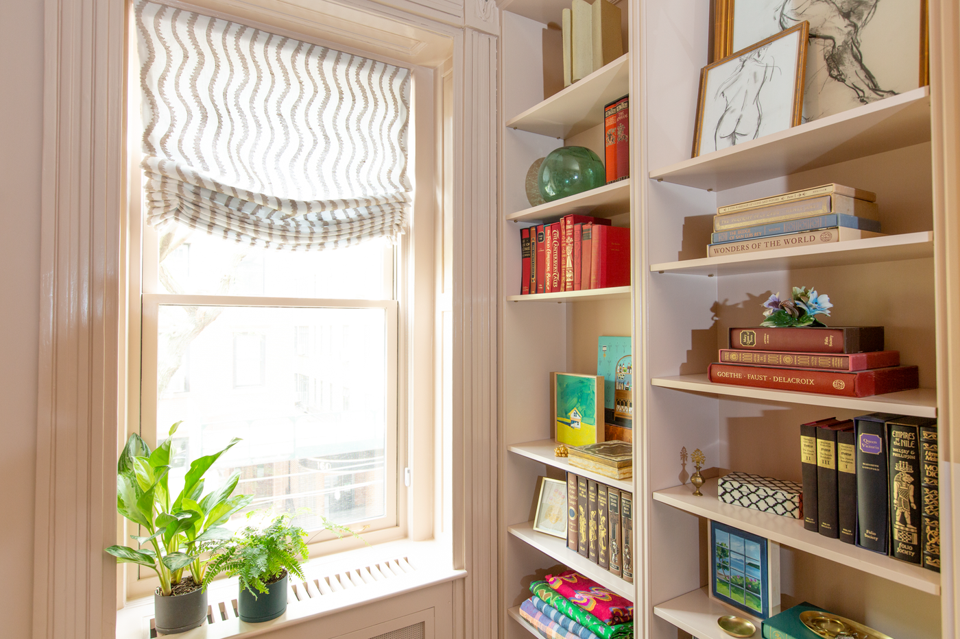 “I love the way sheer fabric looks. It feels fresh and adds a sense of lightness and ethereality. I use sheers often in window treatments when some privacy is needed but we want the light to filter through. We thought sheers would be the perfect treatment for the windows in this Upper East Side living room. They add warmth and a softness framing the windows. They allow light to filter through and can also block sun glare.”