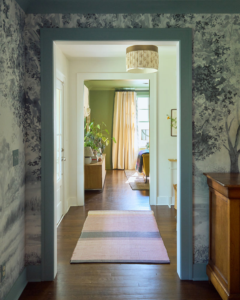 I don’t think houses are ever “finished.” They evolve and change, just like the natural landscape, over time. That said, it felt good to see those rooms take shape, and I know which ones I want to focus on next. I’ve been thinking about the entryway, which feels a little bare now compared with the spaces on either side of it. I want to create a soft custom rug for the stairs, so you see something beautiful and personal the minute you walk in. I’m still looking for the perfect console table. (One that I bid on and won in an online auction didn’t work as well as I had hoped.) And now that the dust has settled, I’m looking at the white walls and imagining how I can bring in texture or color. It’s a big, open space that continues all the way up the stairs and down the hallway, so it's very impactful. I want it to have a special, warm feeling. I’m imagining covering the walls in something subtle, like our new “solid” Alder wallpaper.