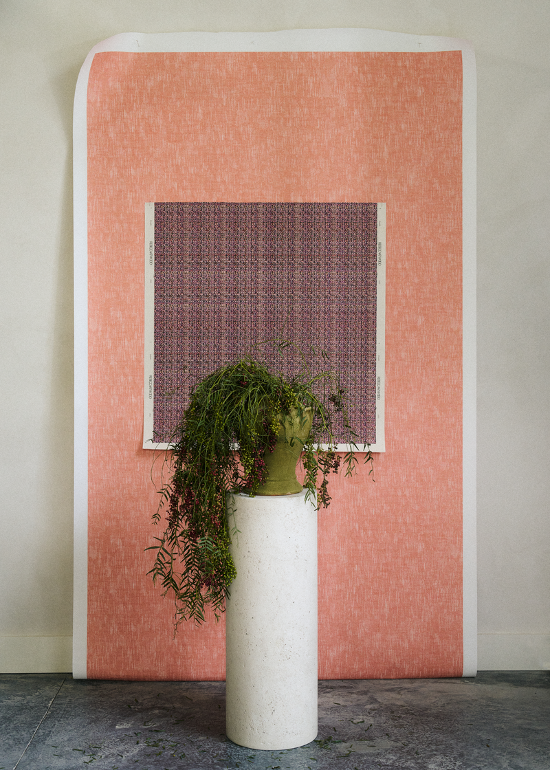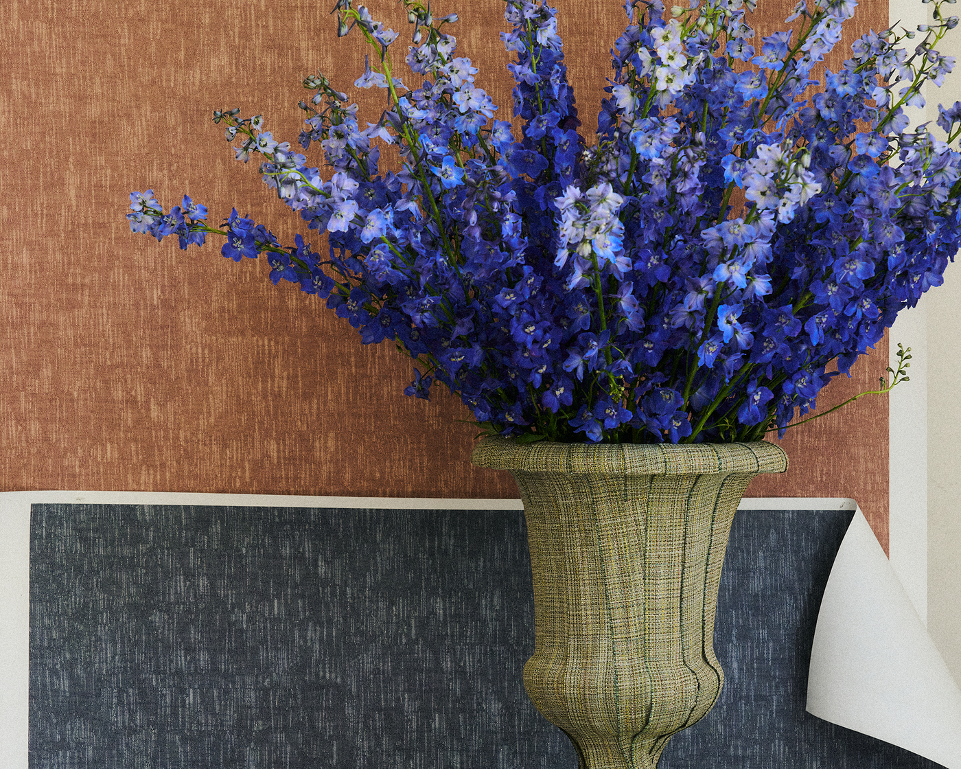 In decorating my house, I’ve really enjoyed seeing how a flat painted wall looks against wallpaper and how wallpapers printed on different grounds reflected light and color differently. That inspired me to create some simple, textured colors that enhance how we experience color at home and bridge the contrast between a flat painted room and one that’s covered in a patterned wallpaper or immersive mural. A textured, printed color can envelop a room and give it a natural, engaging feeling.