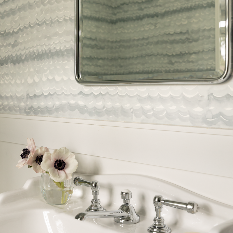 Customers often ask us, “Can I use a wallpaper in a bathroom?” or “Can I use wallpaper in a bathroom with a shower?” We also hear, “Can wallpaper get wet?” quite a lot. It’s a natural question because paper and water typically don’t play well together. However, we love to see our wallpapers used in all types of bathrooms, and yes, it’s safe to install our wallpaper in a bathroom. We do, however, recommend using different wallpaper grounds and design strategies to protect your walls depending on the specifics of your project.