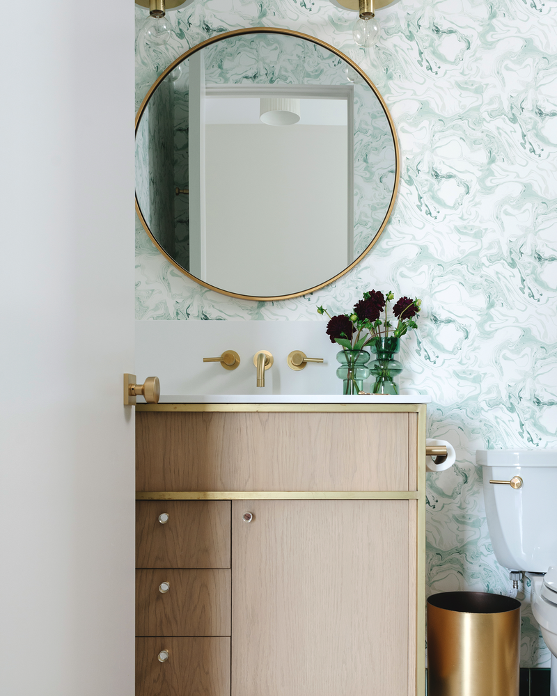 Some of our favorite wallpaper installations are bathrooms. We love how quickly and effectively wallpaper’s colors and patterns can set the mood in the spaces where we spend quiet moments throughout the day. It really is transformative. In a powder room, you can try out a small dose of a wild pattern or dark color where your guests will see it. In a primary or children’s bathroom, it can create a calming, invigorating, or playful atmosphere. There are so many ways the best wallpaper for bathrooms can add personality and style.