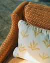 When Rebecca painted this simple yet striking botanical pattern before she moved south, she loved the energy of its leaves. Now that she’s based in Charleston, it has taken on a distinctive coastal charm. We love that it can shift and assume so many other natural forms depending on the colorway you choose—a palm frond or a piece of coral.