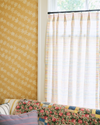 This loose, painterly plaid started as a holiday card that Rebecca drew in watercolor pencil. She loved how the hazy effect of the pencil created a multicolor stripe that’s bright but livable and versatile. Printed on our European linen, it’s a beautiful choice for lightweight but not quite sheer curtains, a window seat cushion and matching pillows, or a headboard.